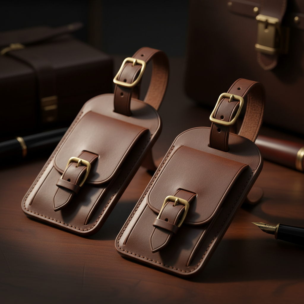 Travel with distinction using this set of premium leather luggage tags. Handcrafted from genuine full-grain leather, these elegant tags make identifying your luggage effortless while adding a touch of refined style.